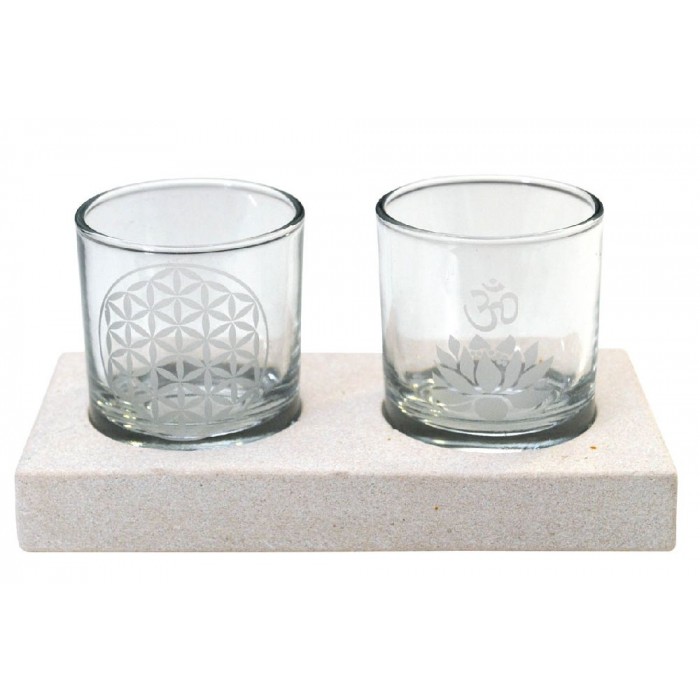 Blume des Lebens – Lotus-Om-Glas; graviert auf Stein